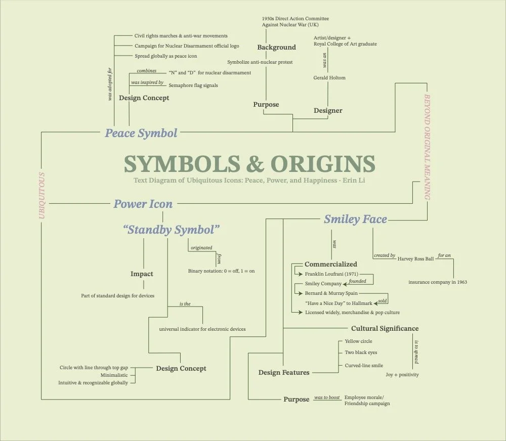 A text diagram that presents the history and meanings of three ubiquitous symbols.